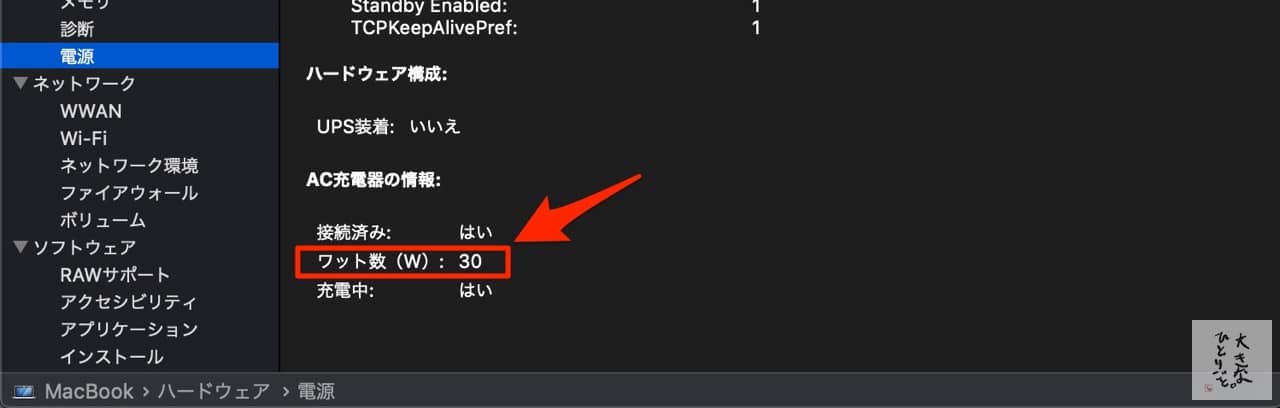 MacBookと接続して充電状態を確認したところ、しっかり30Wで充電されてました。