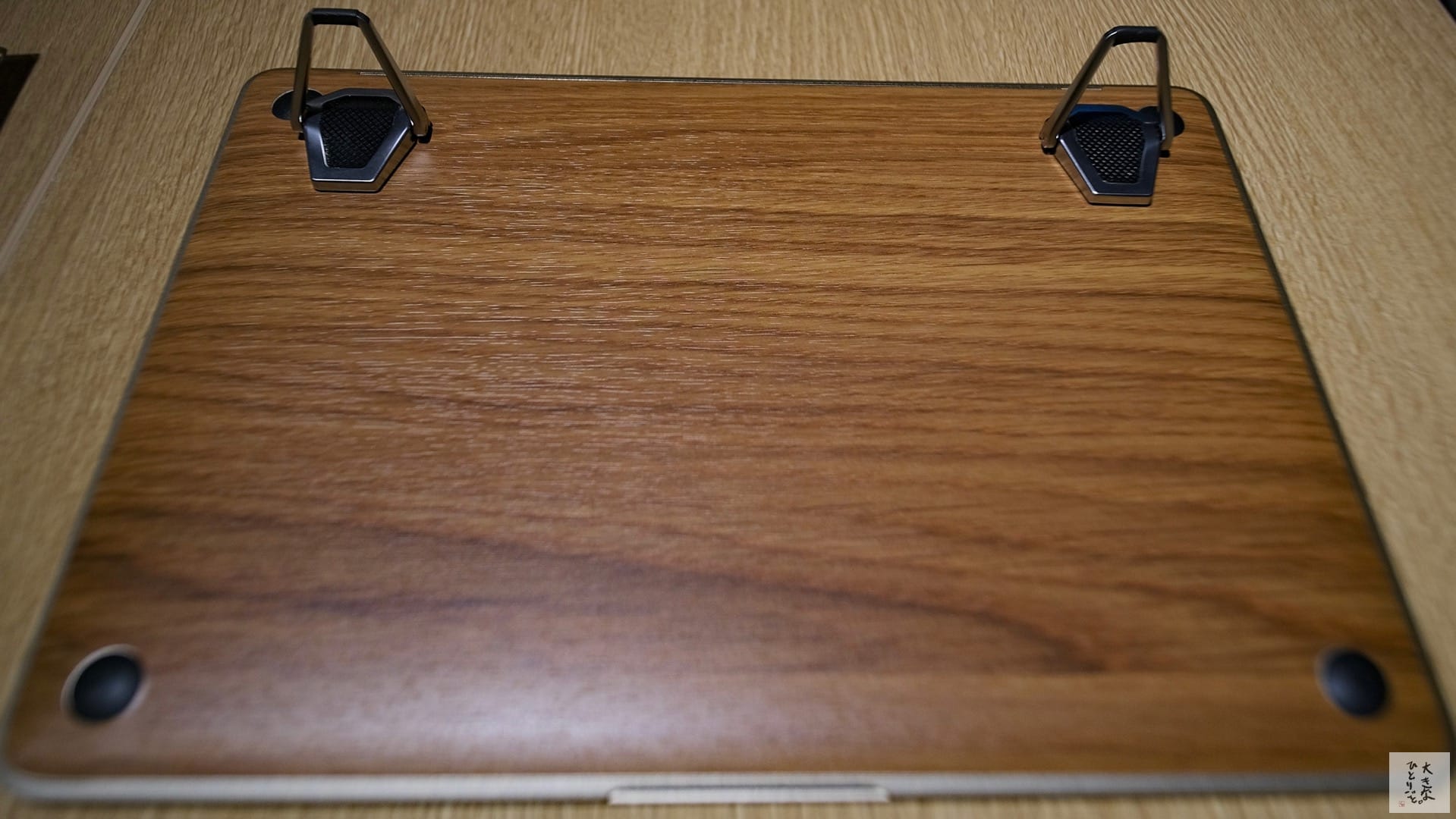 よく見るとスタンドの足を立てなくても滑らないようにゴムが付いてます。ありがたい。