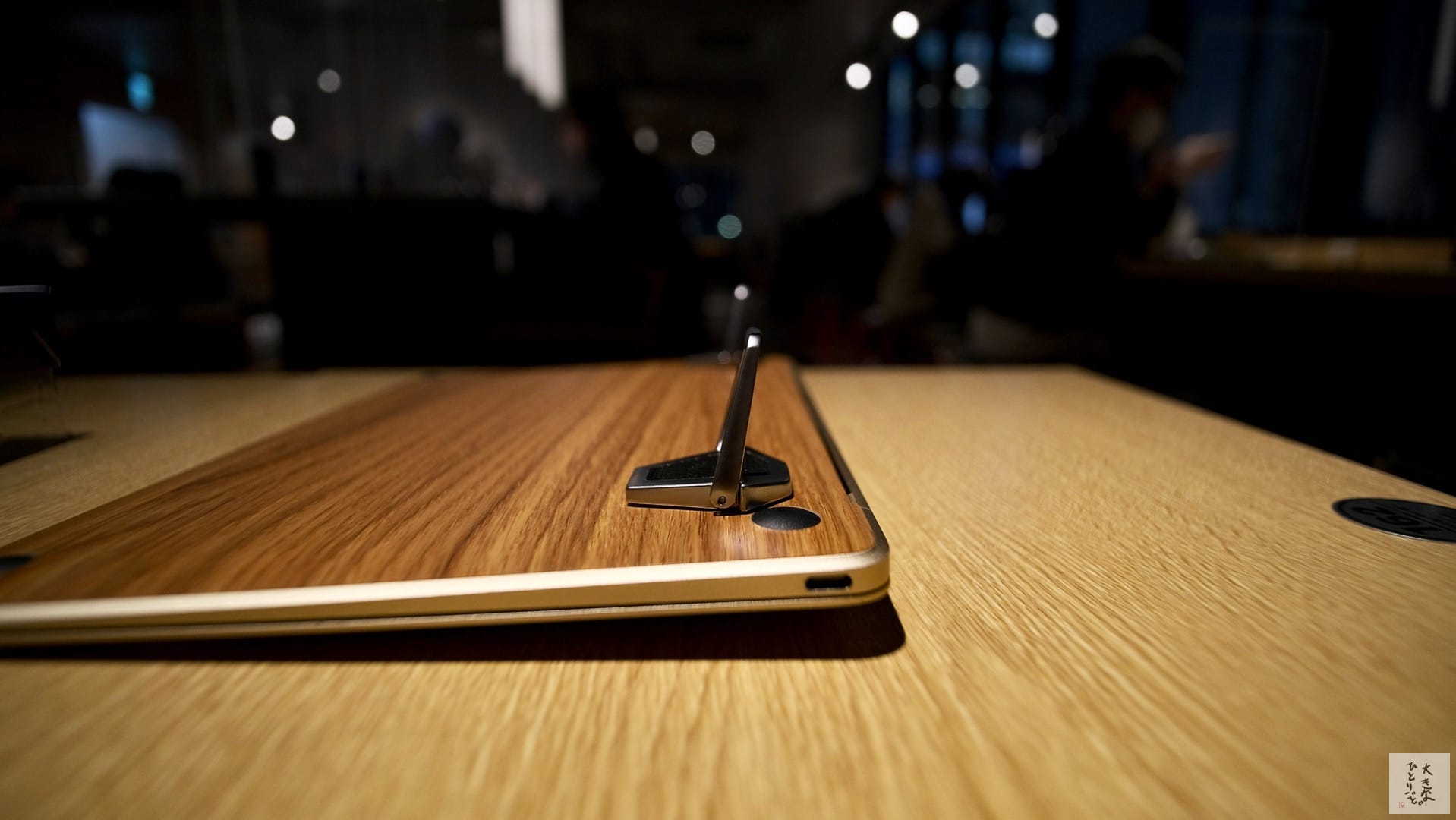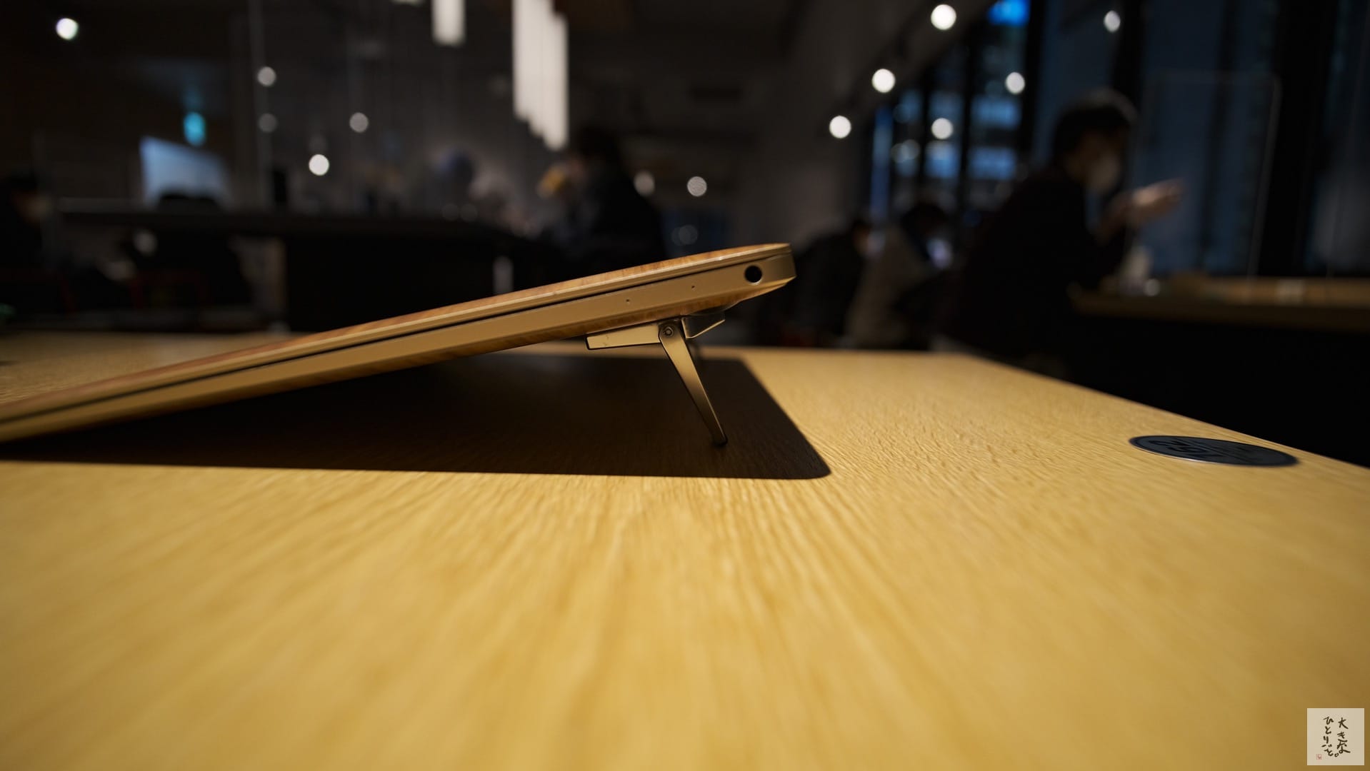 スタンドを立てて横から見るとこうなります。素材の質感に高級感があります。