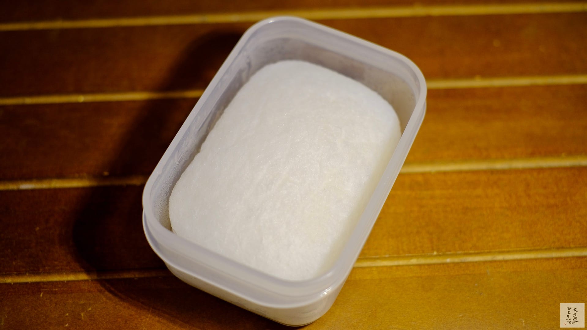 100均のキャンドゥで買ったタッパーがジャストサイズでした。この状態で冷蔵庫に保存しています。