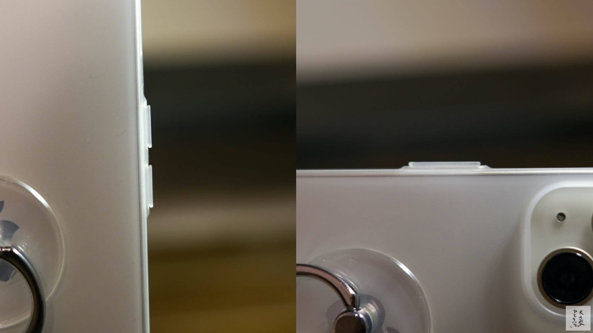 電源ボタンは保護されています。ちなみに音量ボタンも保護されてます。マナーモードのスイッチだけくり抜かれてる感じです。