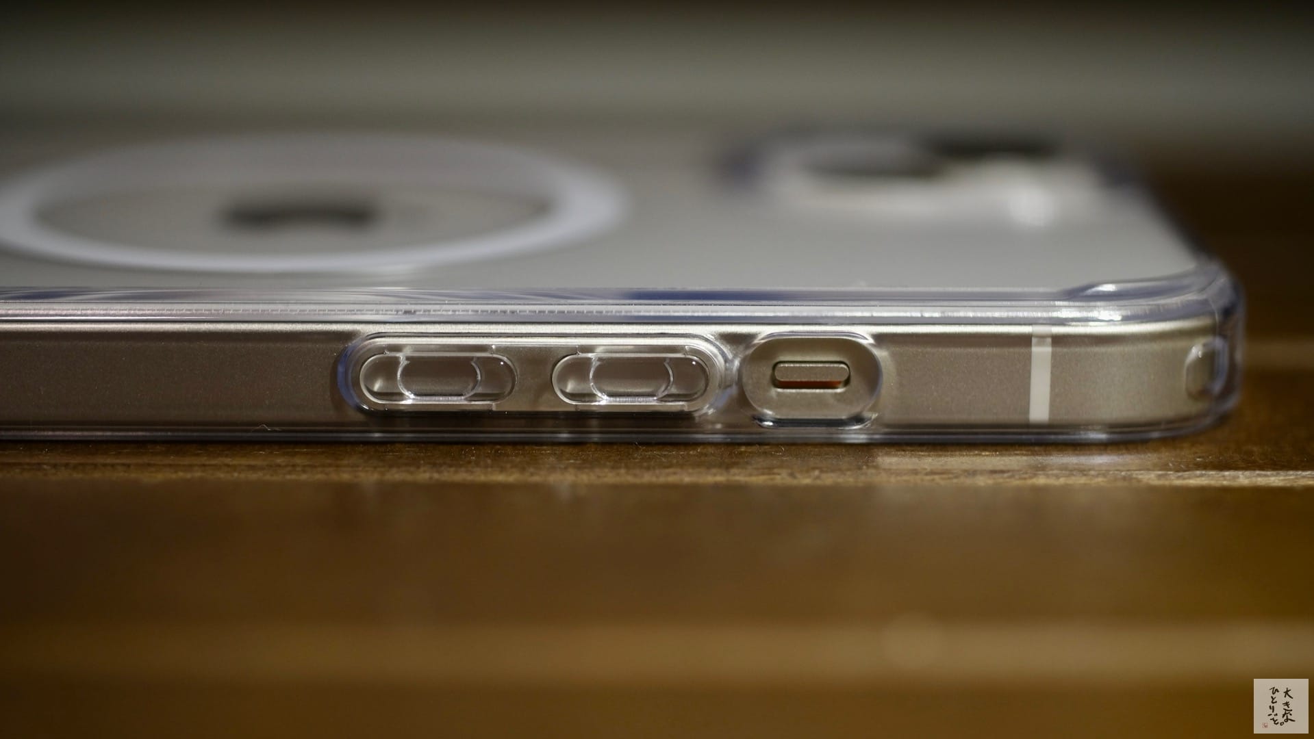 音量ボタンは保護されてますがマナーモードのスイッチはくり抜かれています。