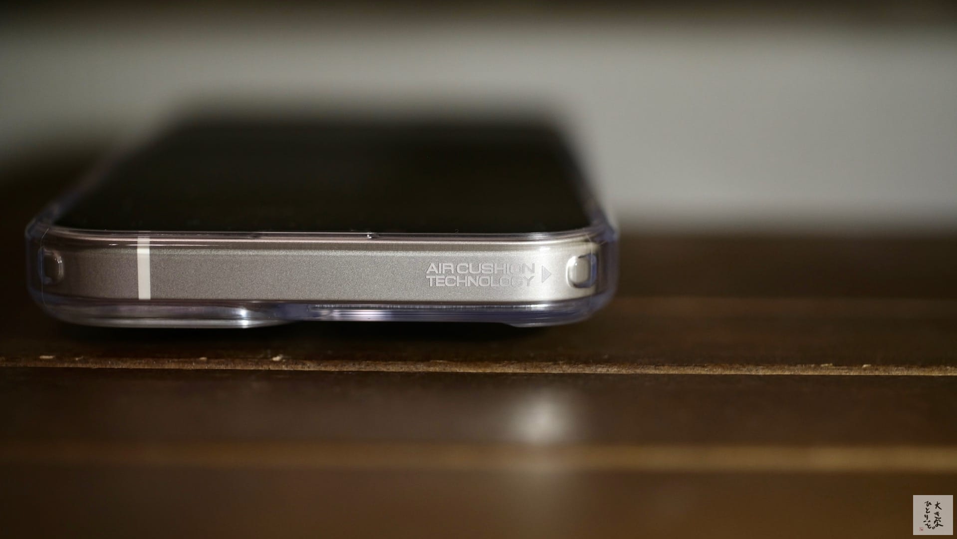 さらにケースの上部にも衝撃に強い的なアピールの一文がありました…。シンプルデザインが好きな私としては、ここはシールなどにして剥がせるようにして欲しかったなー。