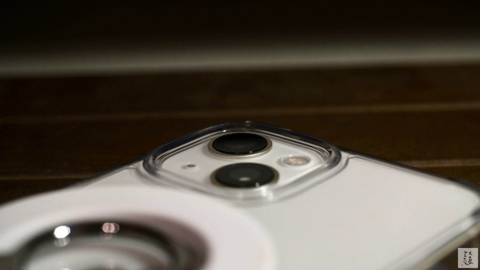 iPhone13に装着マグネットの部分は同じ白でもやっぱ目立つね…。
