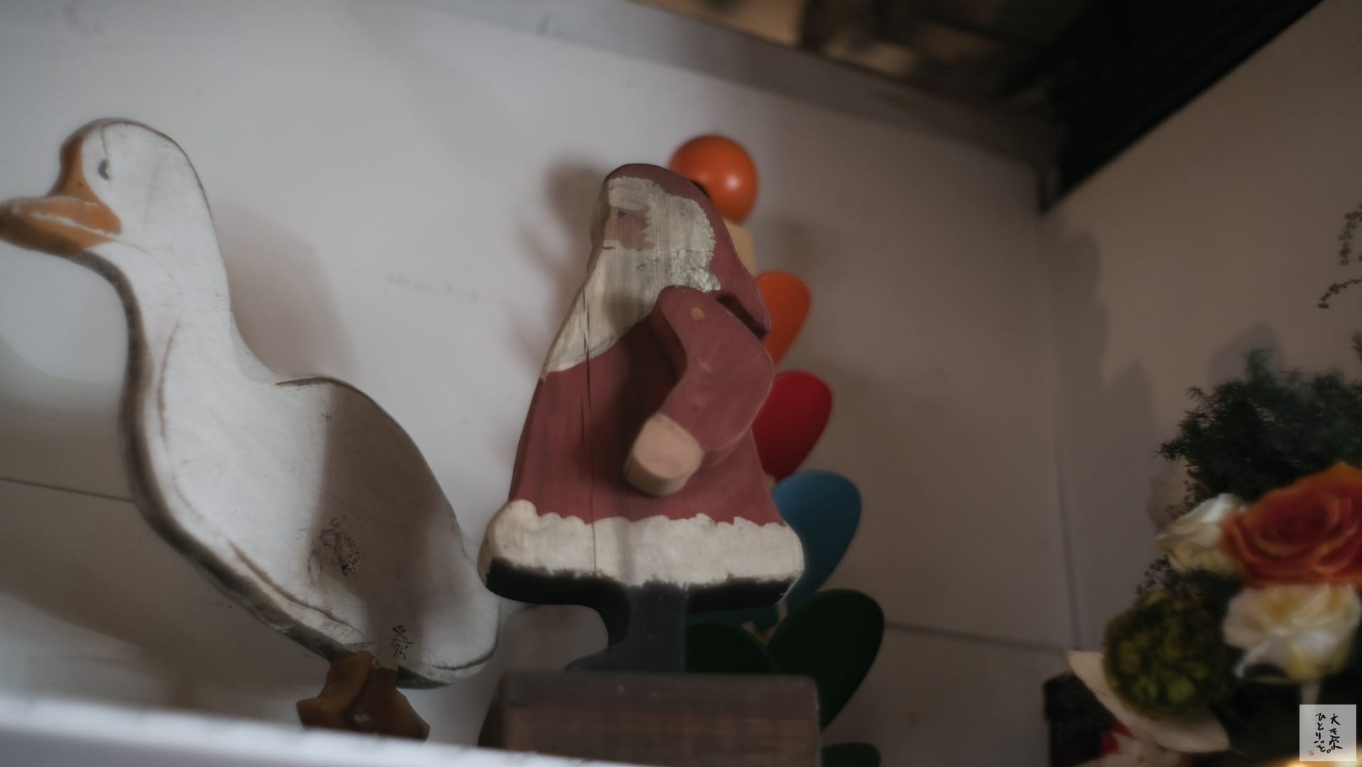 店内には大量のクリスマスグッズが…!これは明るさを稼ぐために開放(F1.8)で撮ってます。