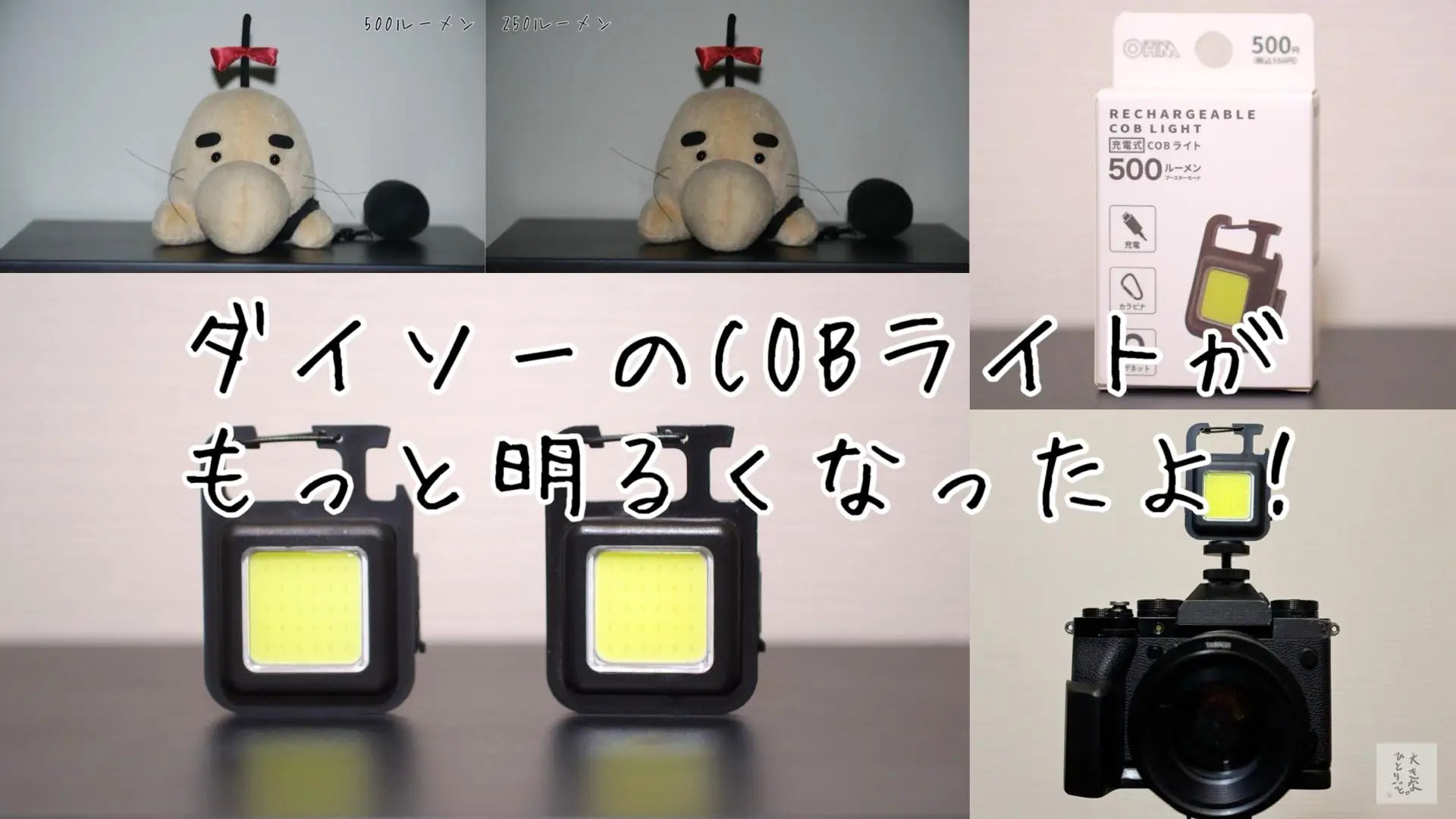 明るさ以外で気がついたところとしては光の色が250ルーメンのモデルは黄色っぽくて500ルーメンの方は白って感じでした。最近のカメラならホワイトバランスを自動で合わせてくれるのでそこまで気にならないかもしれないけどね。